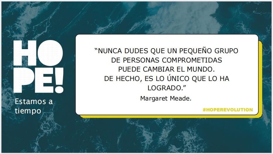 Inspirados por el enfoque constructivo que promueve Javier Peña, creador de la serie documental HOPE! Estamos a tiempo, que acaba de ser reconocido con la Orden Civil de Alfonso X el Sabio, nos gustaría seguir ese camino de esperanza y acción, alineando iniciativas con el marco normativo actual, tomando en cuenta la Ley 7/2021 de Cambio Climático y Transición Energética, así como los planes nacionales y los regidos por la Unión Europea.